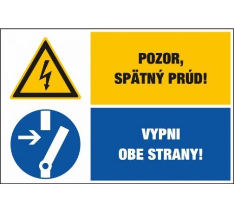 Úvod KOMBINOVANÉ ZNAČKY DVOJITÉ ZNAČKYD323 Pozor spätný prúd!/Vypni obe strany! samolepka 64x65 mm