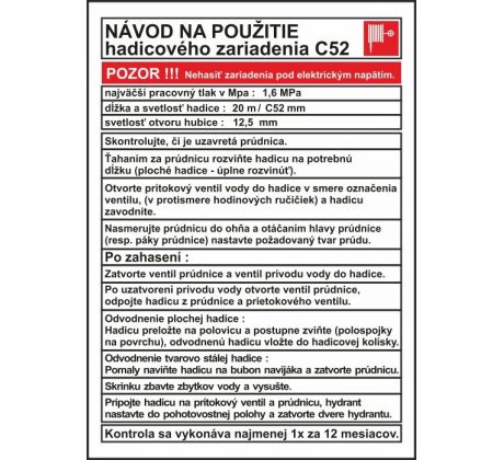Úvod POŽIARNE UZÁVERY...F-návod C52 Návod na použitie hadicového zariadenia C52 100x140 mm