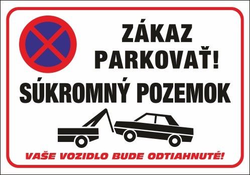 Úvod TEXTOVÉ ZNAČKY555 Zákaz parkovať! Súkromný pozemok A4 plast hr. 3mm